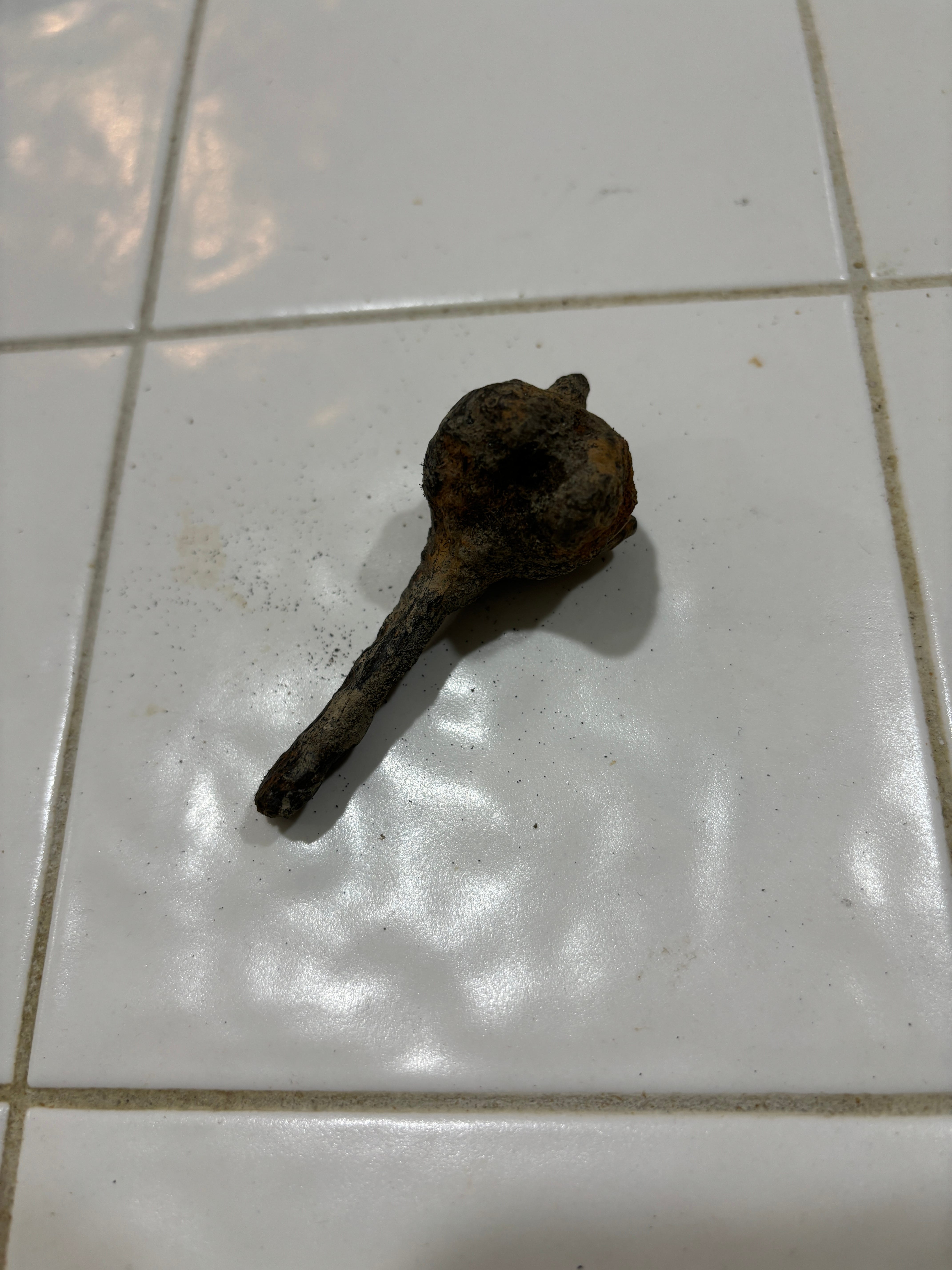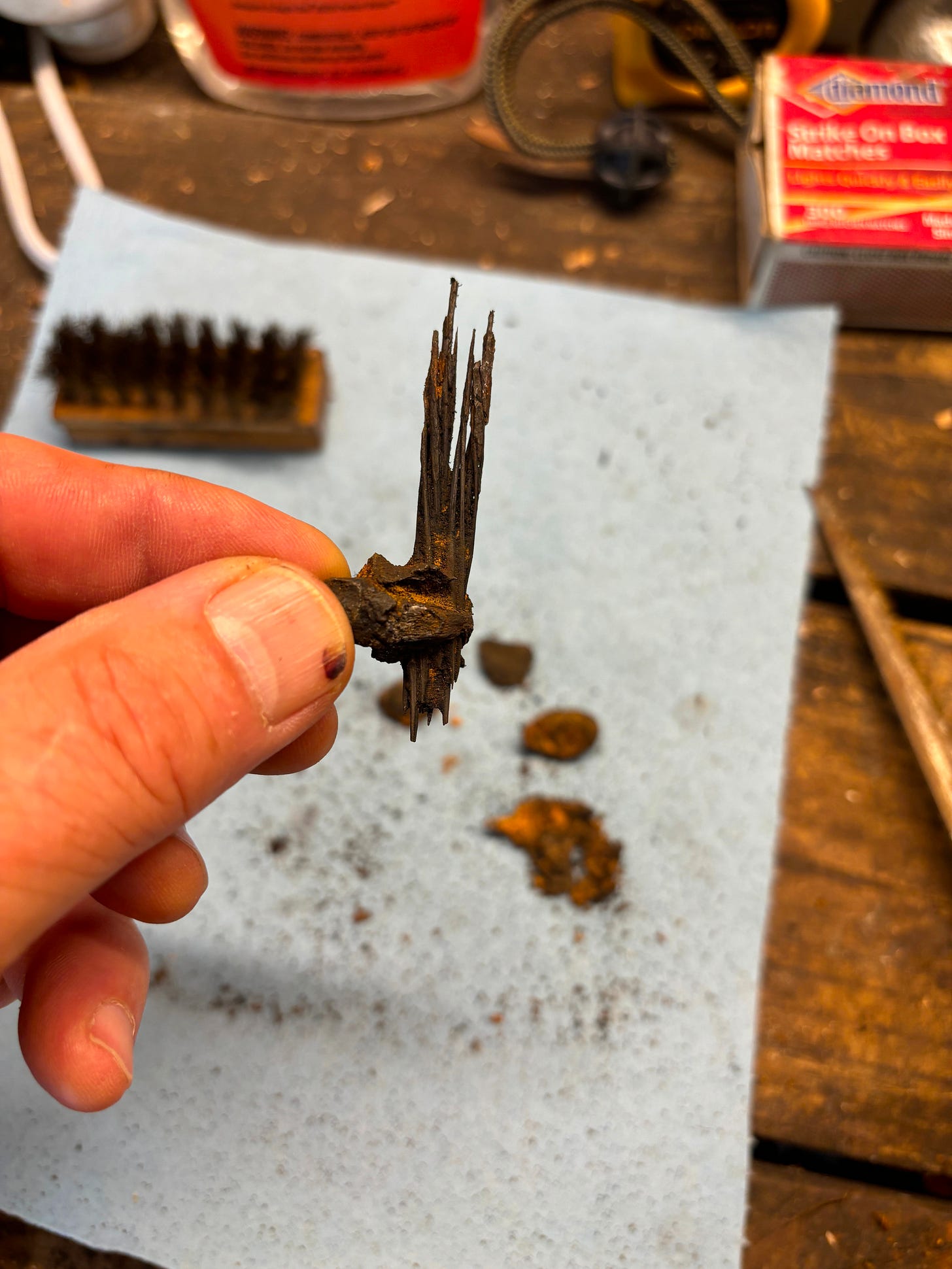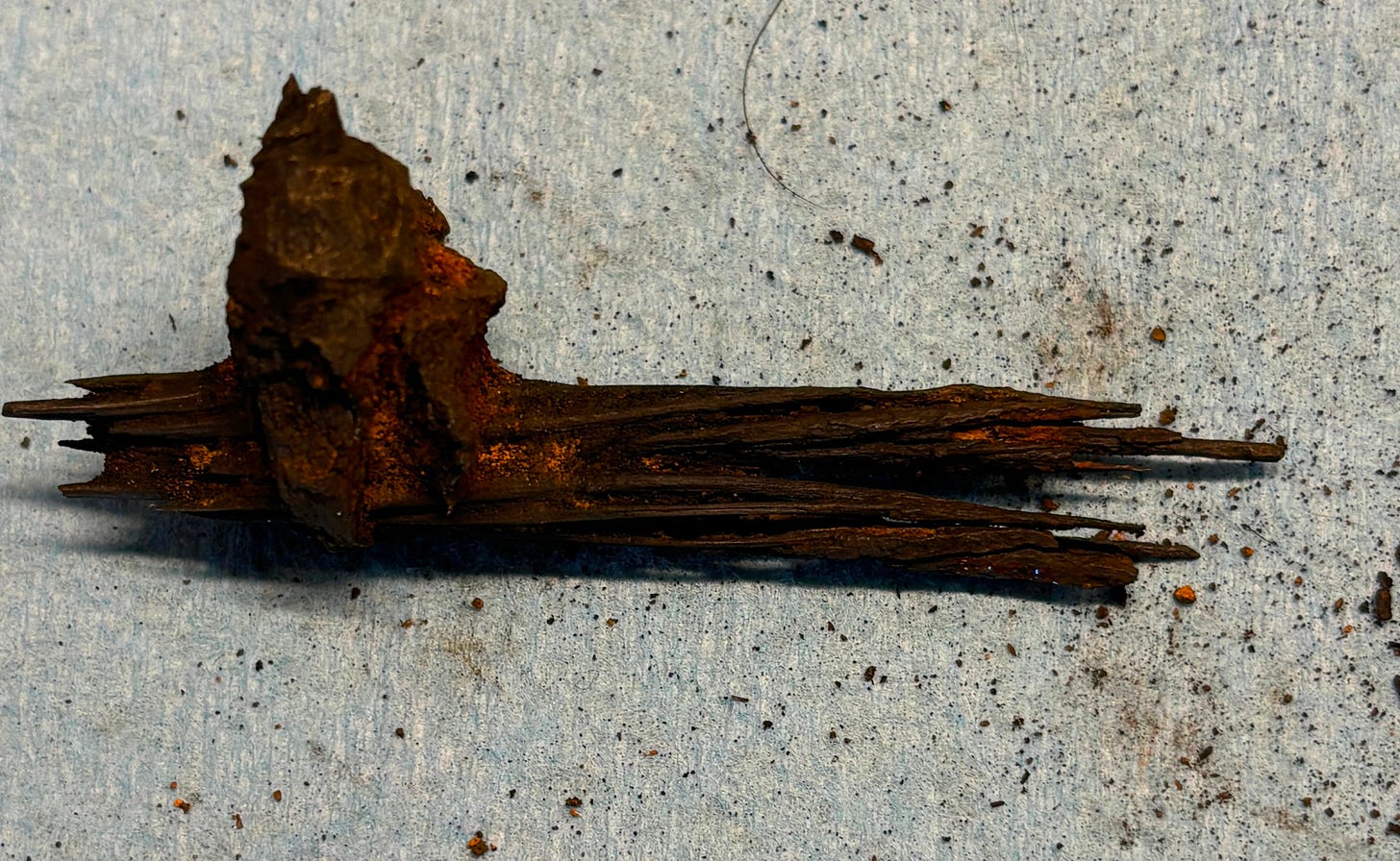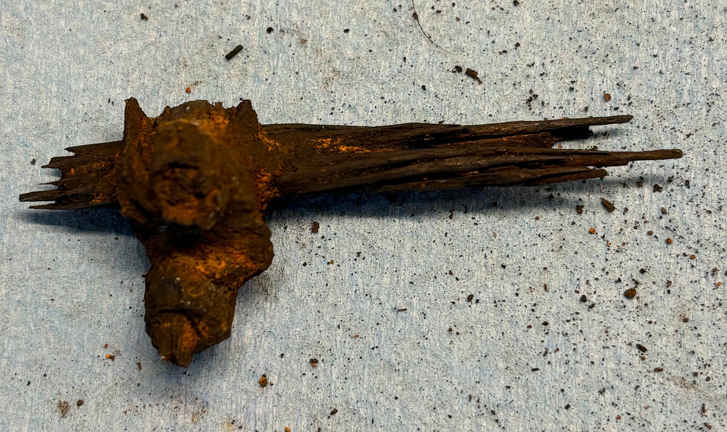 Since then, I’ve put the artifact in a hydrolysis cell to reduce the corrosion and now I can identify it. It’s not a nail!